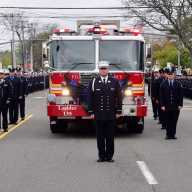 Thousands of firefighters lined the streets of Bethpage, Long Island on a misty Thursday morning to pay tribute to FDNY veteran William Tolley, a member of Glendale‘s Ladder Company 135 who plunged to his death last week while battling a fire in Ridgewood.