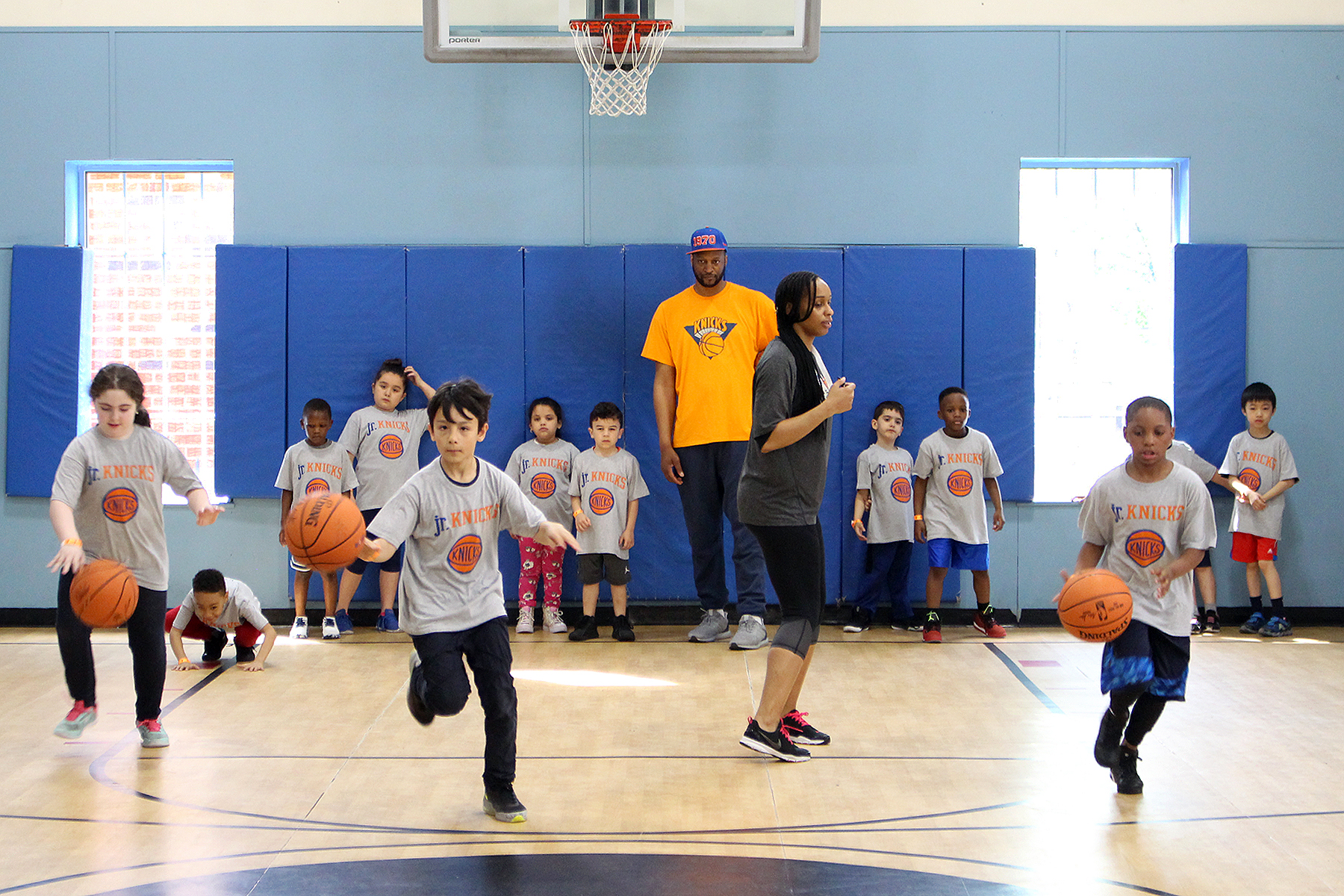 Over 600 residents attended the day-long event at the Ridgewood Y — located at 69-02 64th St. — on April 29, and girls and boys aged 5-11 got to take part in a Junior Knicks Basketball Clinic, where they participated in exercise drills that taught them to stay healthy and fit while learning the fundamentals of basketball with Wallace on hand to help the kids with their form.