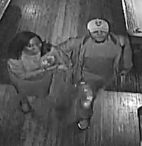One of the suspects is a woman, between 25-30 years of age, last seen wearing a dark coat and black shoes. She was carrying an orange book bag and had the victim’s purse.