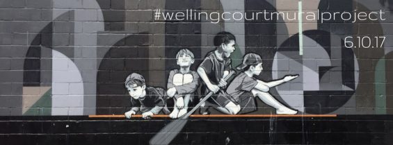 Artists on display for the Welling Court Mural Project include: Abe Lincoln, Jr., Adam Dare, AM, Alison Buxton, Andy Golub, AVOID, Beau Stanton, BIA3, Billy Mode, Cake, Caleb Neelon, Cekis, Cern, Cey Adams, Christopher Cardinale, Chris RWK and many more.