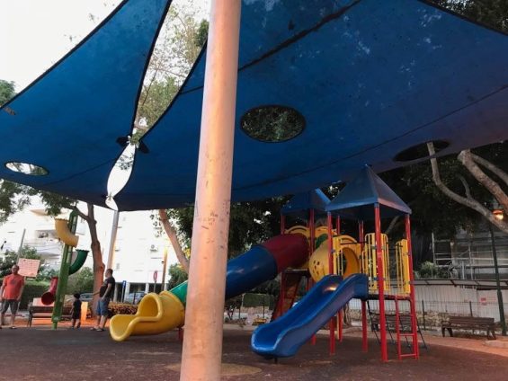 Vaknin said that she was recently in Israel and noticed that the playgrounds include shade canopies—or tarps—to protect children from the sun. She also said that the slides were made of plastic as opposed to metal that heats up.