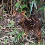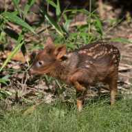 The male fawn was born on May 17 at the Queens Zoo. He has white spots that are characteristic to newborns of many deer species. As the fawn grows, the white spots will fade and will grow to be approximately 12 to 14 inches tall.