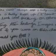To combat the issue of child abuse, the students created symbols of love such as hearts and kind words on one side of their table. To address the issue of cyberbullying, the other side of the table has a poem written by the students to bullies letting them know that their words can have negative effects on others, as well as phone with nice text messages appearing on it to show that “a little nice in this world can go a long way,” Perez added.