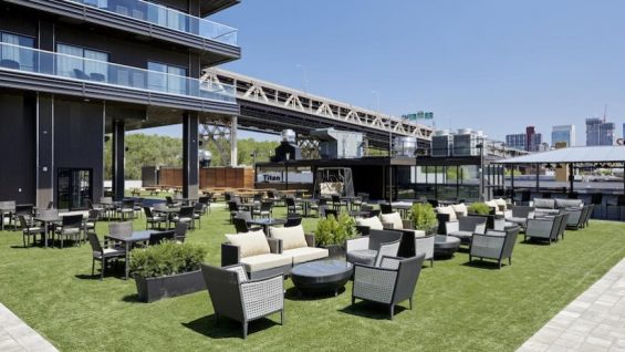 The outdoor beer garden/restaurant, the hotel’s second al fresco restaurant with views of the Queensboro Bridge, is located on the third floor and features tables and chairs set atop an Astroturf patio. The kitchen is being run by Seth Levine, who is also the head chef at Hotel Chantelle on the Lower East Side, with a menu offering grilled meats and seafood, as well as sushi, crudo and oysters. There are 15 types of beer on tap as well as cocktails, wine and rosé.