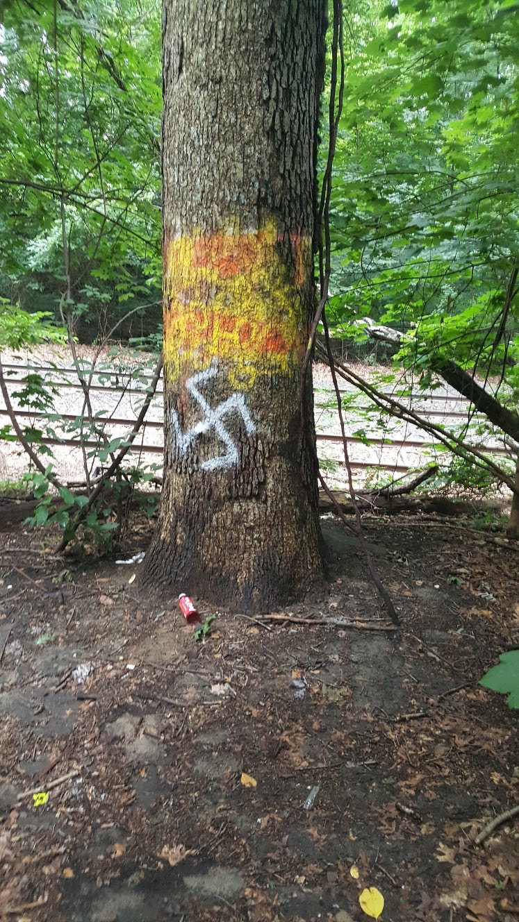 NYC Parks Advocates reported on July 27 that city Parks Department employees found swastikas and homophobic graffiti on tree trunks and even rocks in a secluded area of the park at about 4 p.m. on July 25. The vandalism was discovered in the vicinity of Park Lane South and 112th Street, a short distance from the Long Island Rail Road’s Montauk branch.