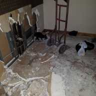 Over the weekend, local rescuers went to the three-story building at 778 Onderdonk Ave., which is presently under construction, in an attempt to lure out some of the approximately 40 cats they believe were trapped in the rubble. According to one of the rescuers, Becky Bernazal, the previous tenant of the third floor unit ditched the cats when she was offered a buyout on her apartment in early July.