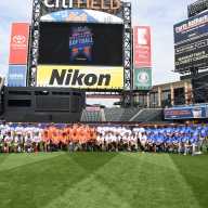 With their family and friends cheering them on from the stands at Citi Field, the teams took the field for warmups before the games began.