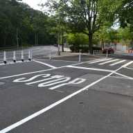 To create the two-way protected bike lane, DOT simply shifted the parking out a few feet which will not only protect cyclists from traffic, but also slow down cars on a roadway known for speeding vehicles and cut back on aggressive U-turning in front of the school, Silverstri explained.