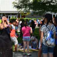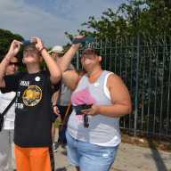 People of all ages gathered at the Hall of Science, either inside the museum or on the front lawn, equipped with all kinds of devices to view the moon passing in front of the sun, which casts a shadow on the Earth.