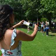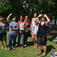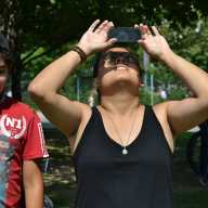 Giann Cortes, Violetta Ochoa, Angelina Beltran, Giulianna Barbero, and Zoila Caceres came from Elmhurst and Corona with an arsenal of devices to watch the eclipse.