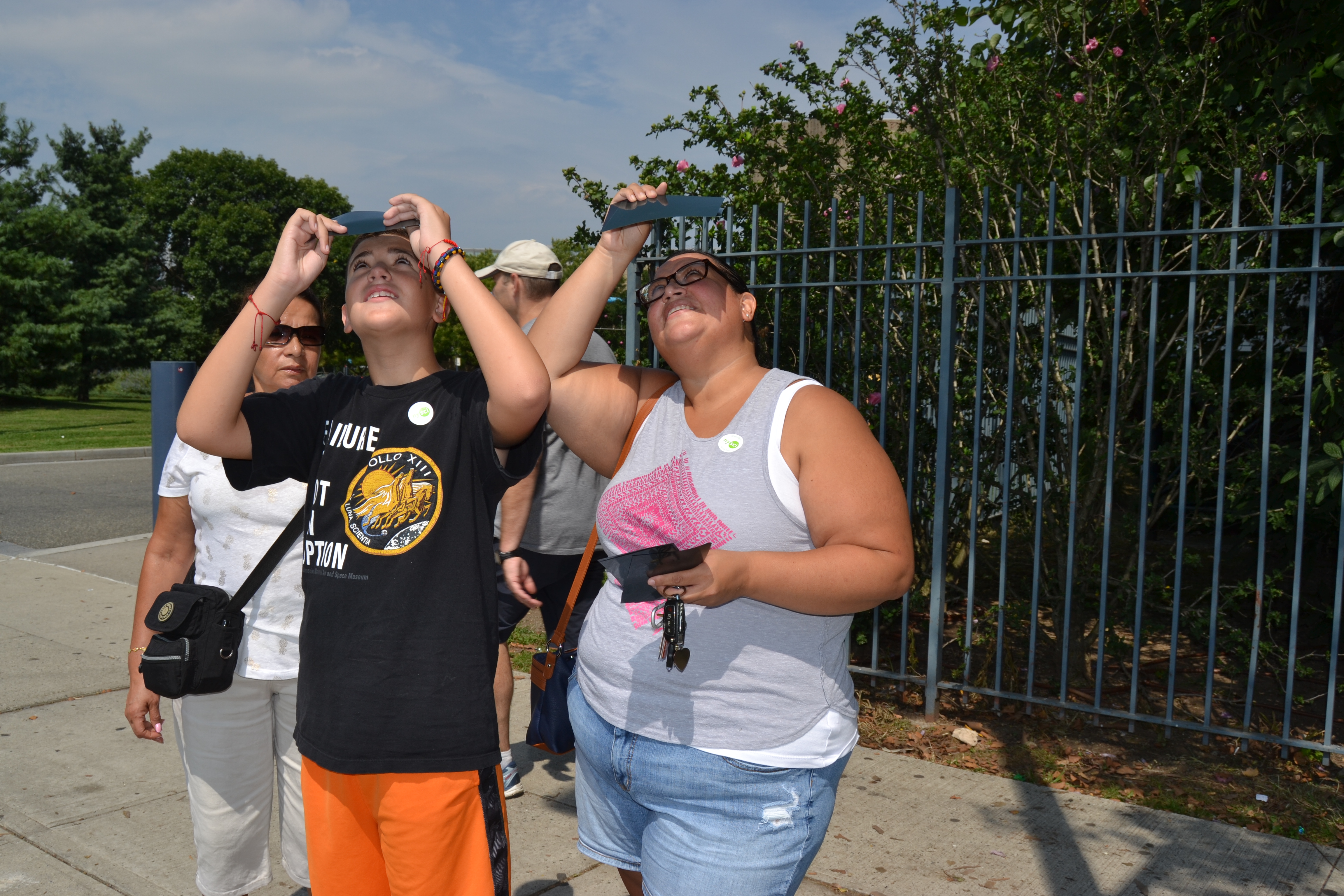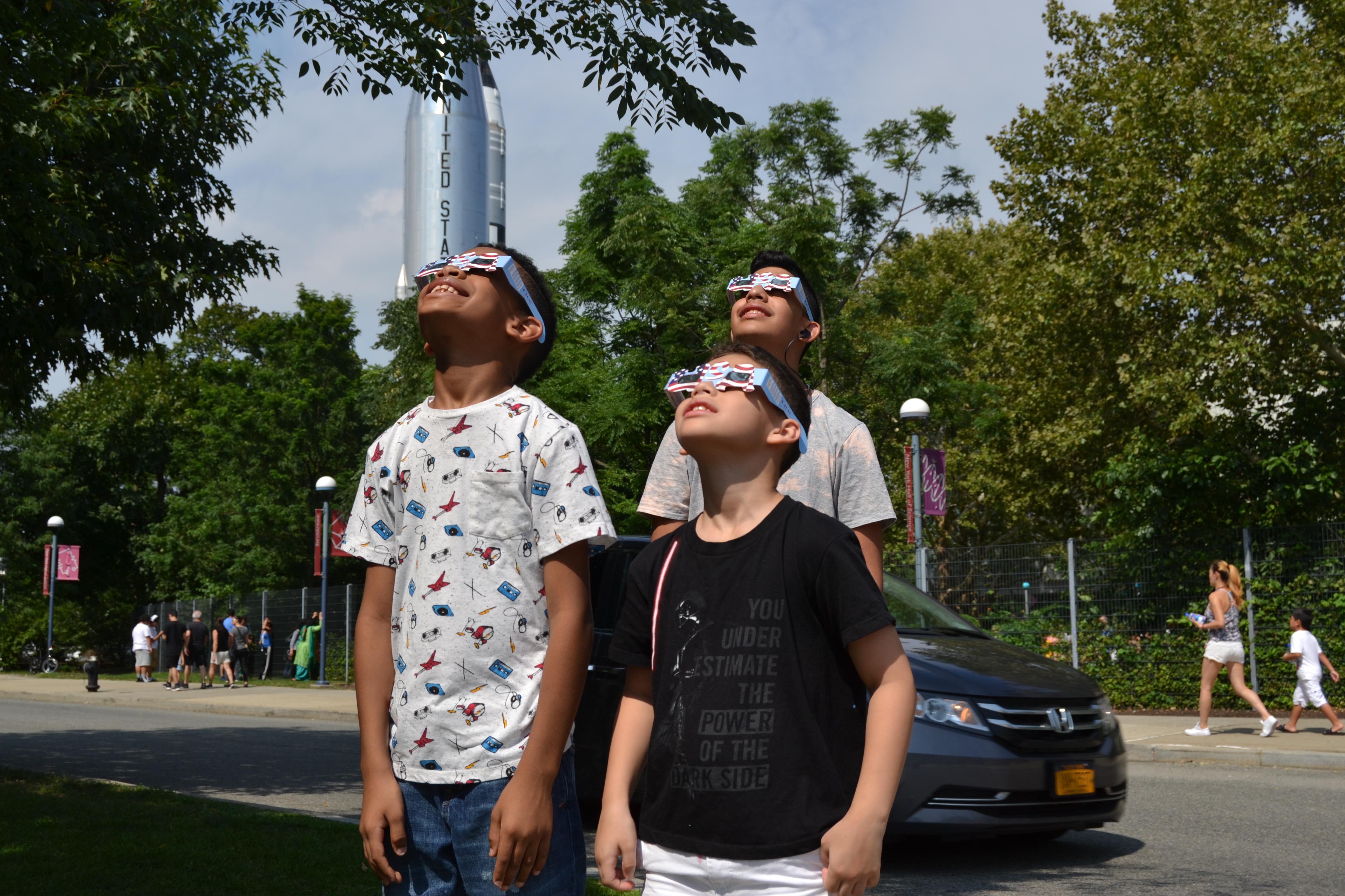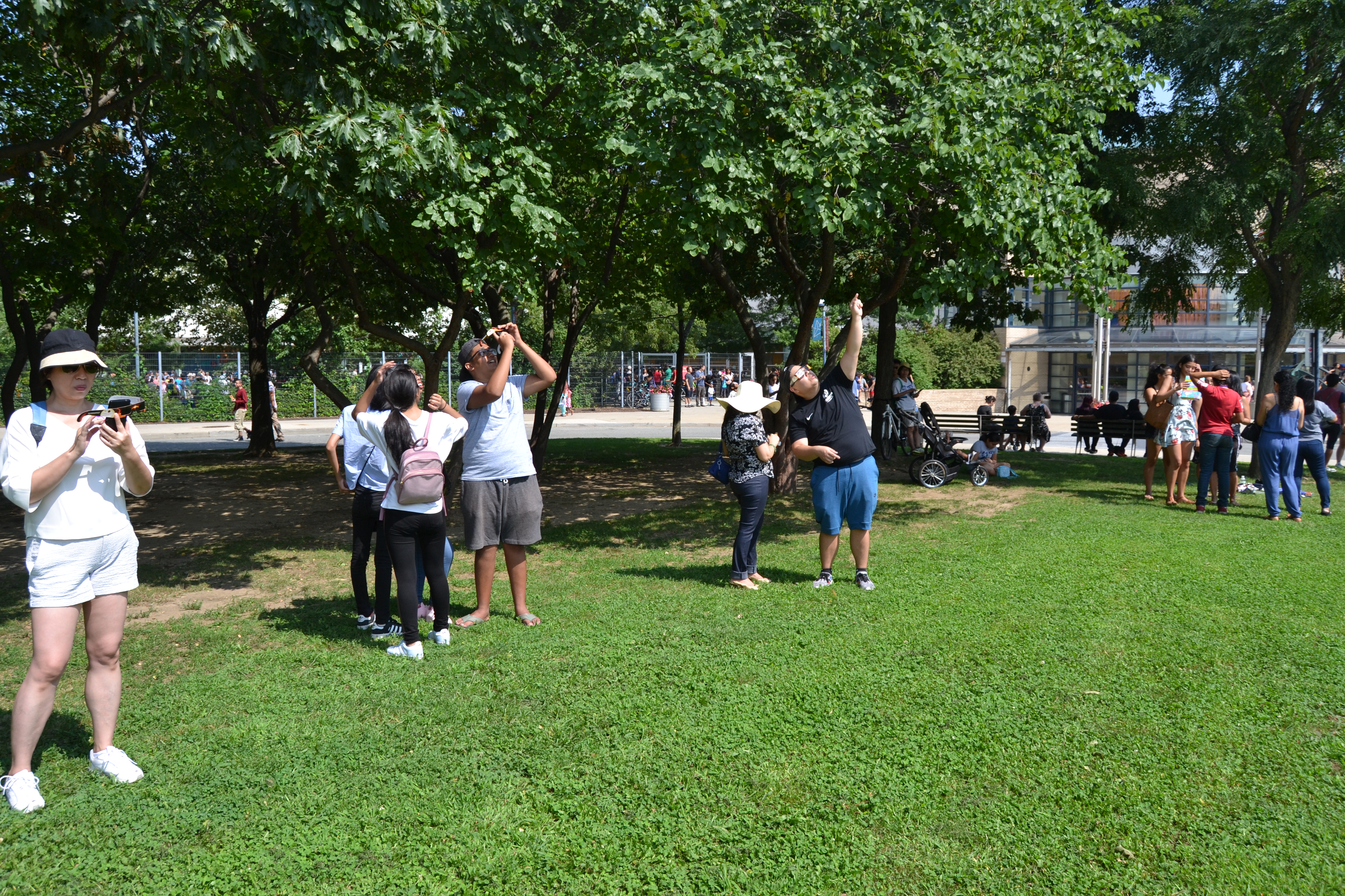 Scores of people got a great glimpse at the “Great American Solar Eclipse” on Monday afternoon at the New York Hall of Science in Flushing.