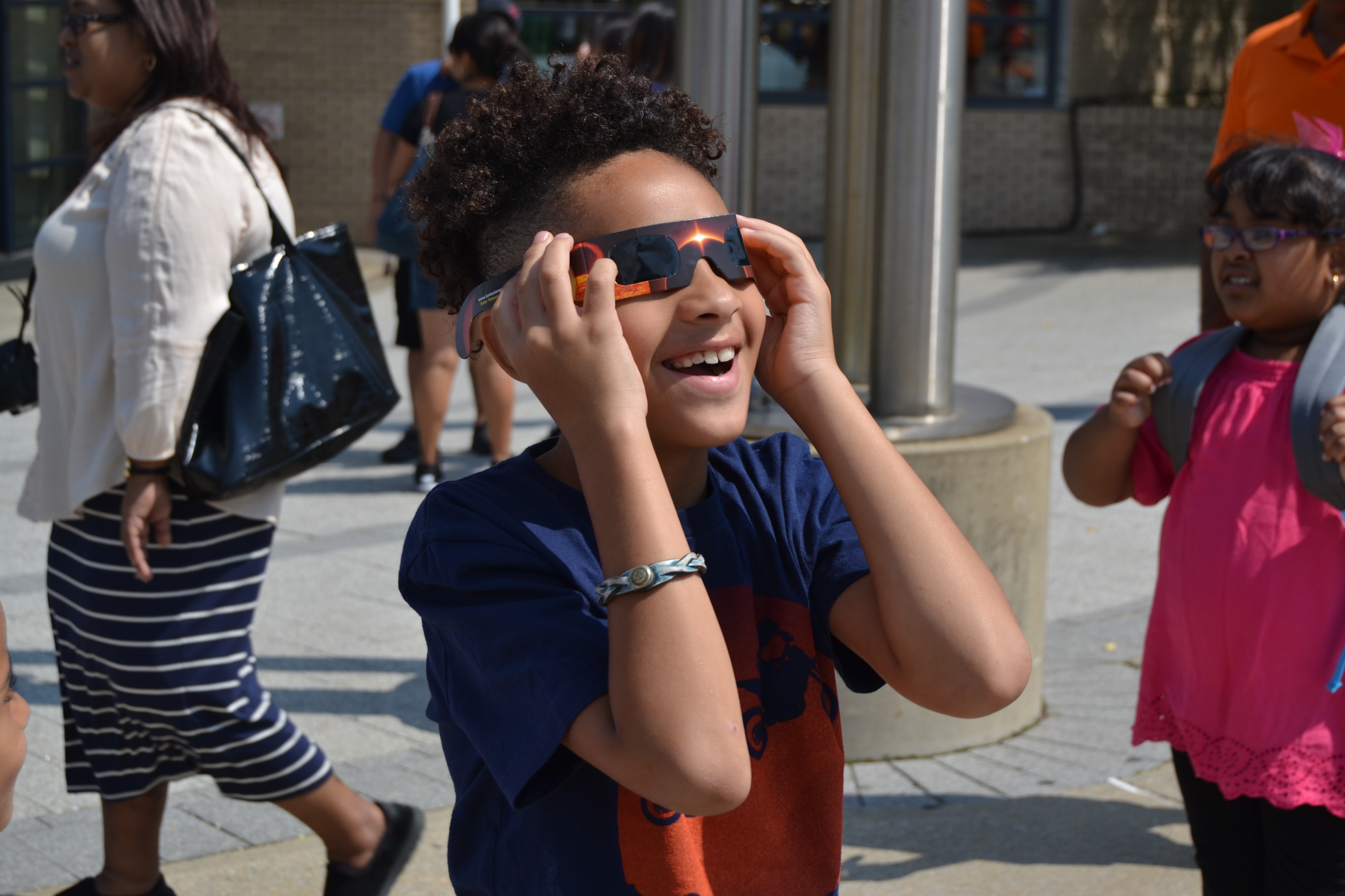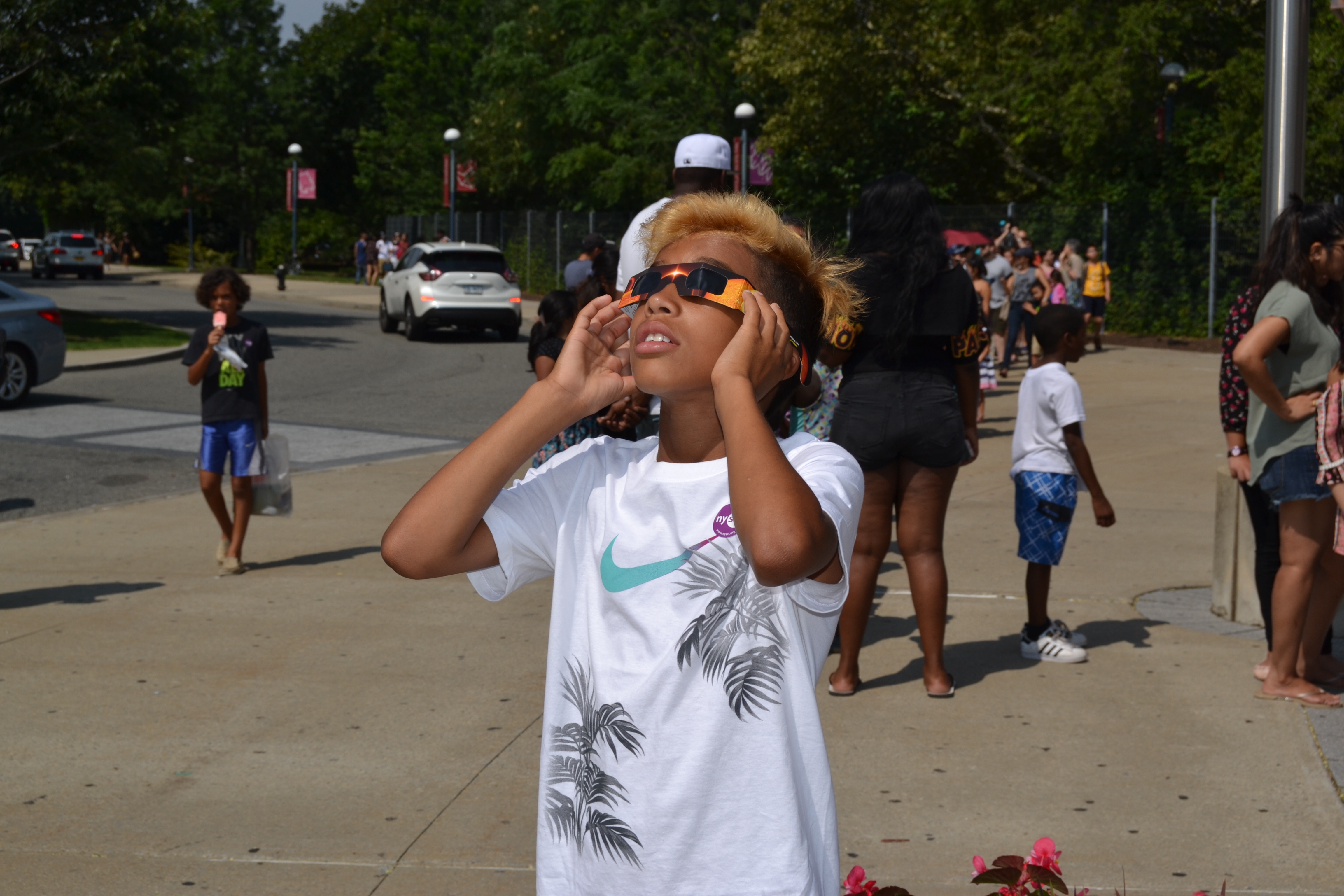 Eliot O’Neil, who was visiting family from Maryland, was excited to don his family’s protective glasses and see the eclipse.