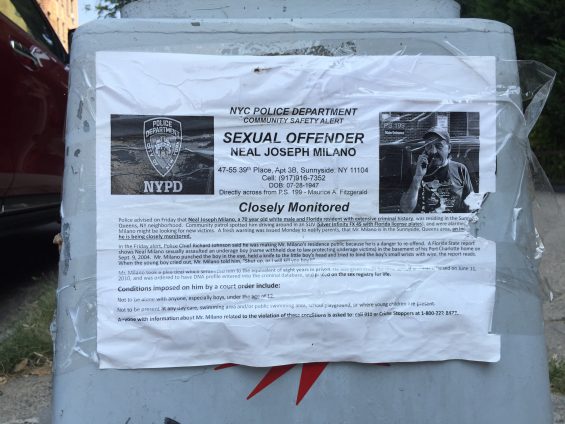 Fake NYPD poster labeling Neal Milano as a sexual offender.
