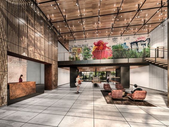The building is also packed with plenty of indoor amenities, including the rooftop sky lounge, a business bar, a children’s playroom, a private party room, a dining area, a fitness center and on-site parking with electric charging stations.