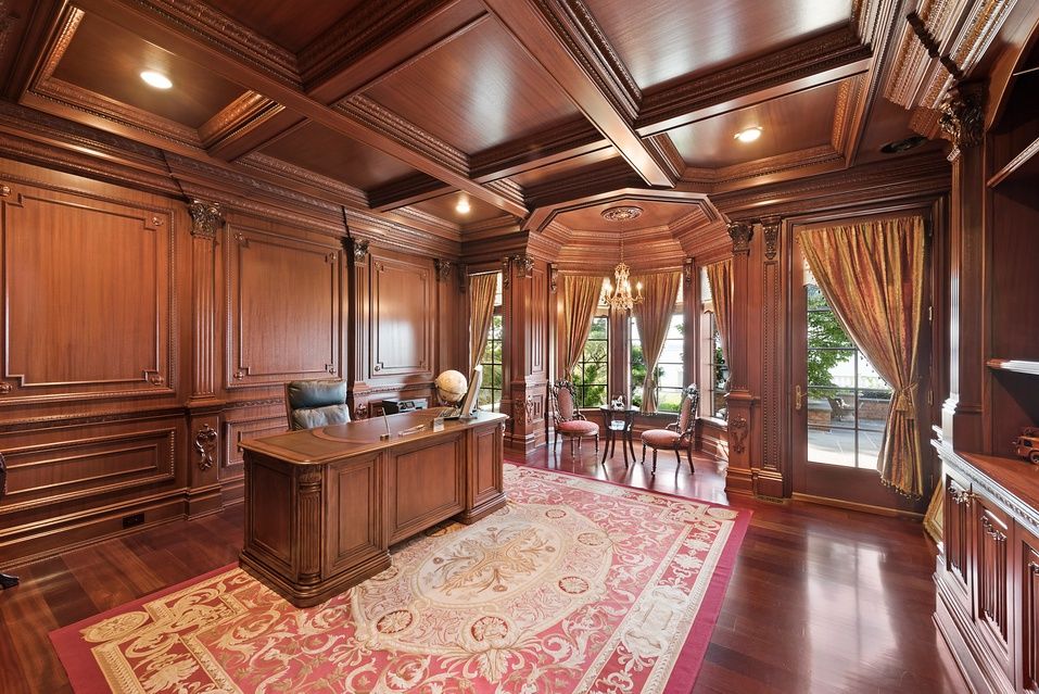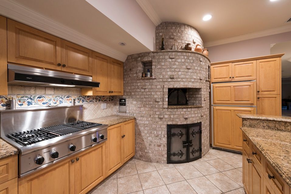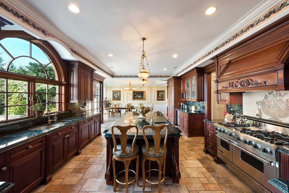 The features don’t end on the main two floors of the house. When you walk into the basement, you’ll find an additional family room, a temperature controlled wine room, a second kitchen with wood-fire brick oven, a guest/staff’s suite, direct access to the three car garage as well as the backyard.