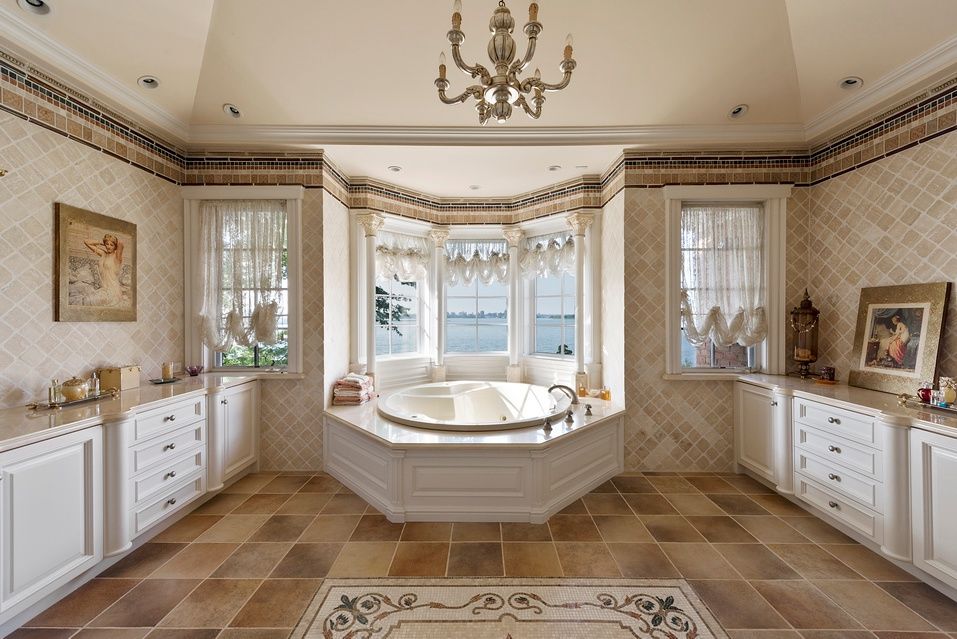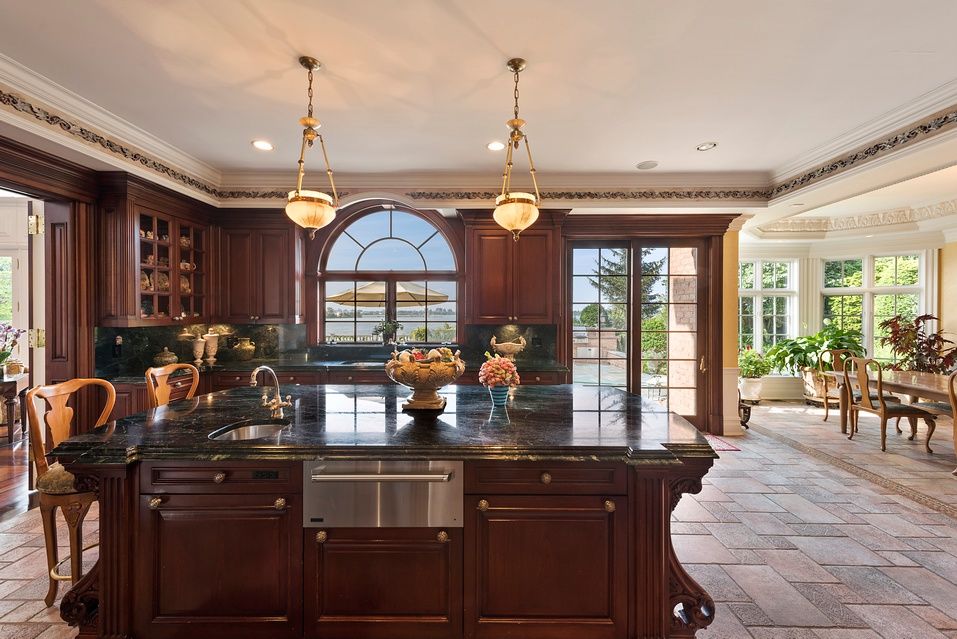 As you enter the home, you are immediately greeted by a beautiful double staircase that gives you access to the second floor of the house. As you explore the ground floor, you’ll find a family room, a huge eat-in kitchen with an extra-large island and hand decorated moldings, a formal dining room, sitting room and a home office that has spectacular views of the Whitestone bridge.