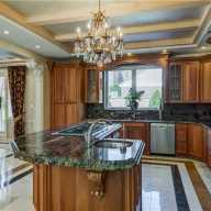 On the first floor, you’ll find an elegant banquet-styled dining room, a gourmet kitchen with high end appliances, walnut cabinetry and double thickness granite counters, living room, and family room. A marble gallery with French doors joins the kitchen with the sunny and inviting breakfast room.