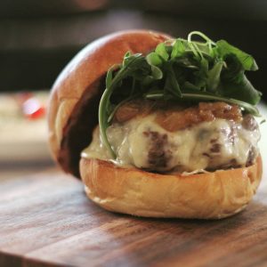 The menu includes items such as the “Queen’s Room Burger” that consists of a housemade blend of ground beef, swiss cheese, caramelized onions, bourbon BBQ sauce topped with buns from Rose & Joe’s Bakery on 22-40 31st St.