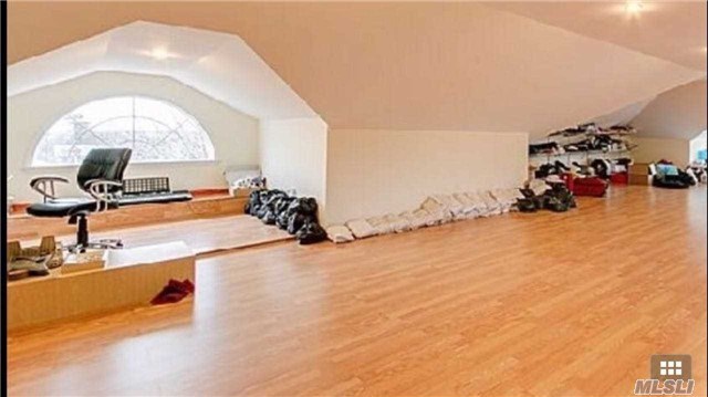 As you head upstairs, you’ll find two master suites, complete with steam showers and Jacuzzi tubs. Beyond the master suites you’ll find four additional bedrooms, four full bathrooms, and a staircase leading to the third floor, which has a full, finished attic.