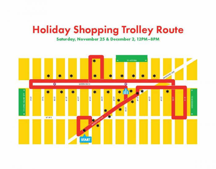 The trolley departs from Sunnyside Taco (42-22 Greenpoint Ave.) at noon and it will be making a continuous circuit throughout the shopping district to pick up and drop off passengers. The circuit takes about 20 minutes (see map below).