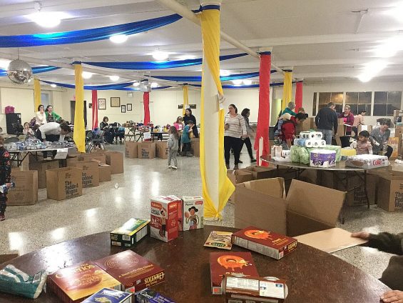 Inside St. Mary’s church during the HPCA’s Food Drive Sorting Party (Photo: Queens Post)