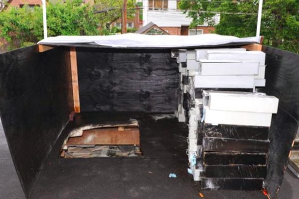 The men then cut their way through the bank vault and safe deposit boxes. They constructed a plywood shed on the roof of the bank to shield their activities.