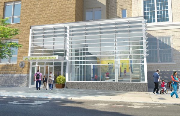 The addition will be adjacent to the existing four-story, L-shaped school building that was constructed in 1931, which sits on a 2.1-acre site. The two buildings will be connected on all flour floors through expansion joints.