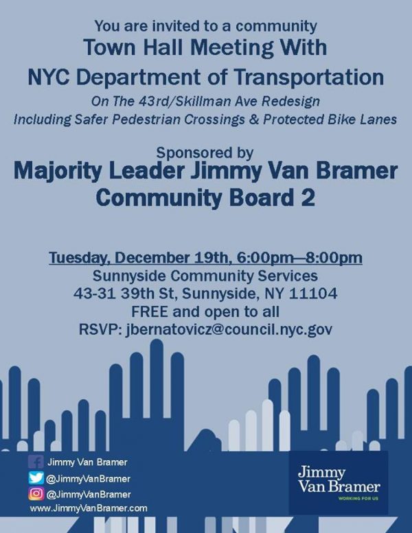 The town hall, free and open to all, will take place on Dec. 19 at Sunnyside Community Services at 43-31 39th St. from 6 p.m. to 8 p.m., and was organized by Councilmember Jimmy Van Bramer and Community Board 2.