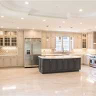 - A spacious, eat-in kitchen with a huge, marble-topped island and stainless steel appliances