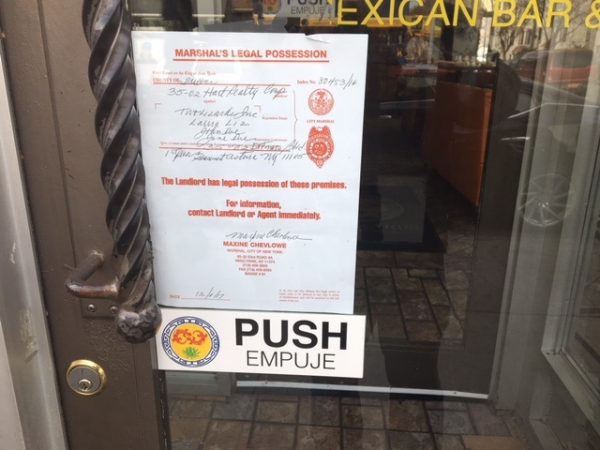 The Astoria location of Mexican restaurant and bar Two Lizards has been shut down by court order.