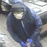 The armed crook — this time wearing a white striped shirt, blue gloves and a black mask over his face while brandishing a firearm — walked in with the second suspect, described as a black man wearing all-black clothing, a white mask and blue gloves. They removed $2,000 from the register and were seen fleeing in the same silver, four-door Honda Accord sedan.