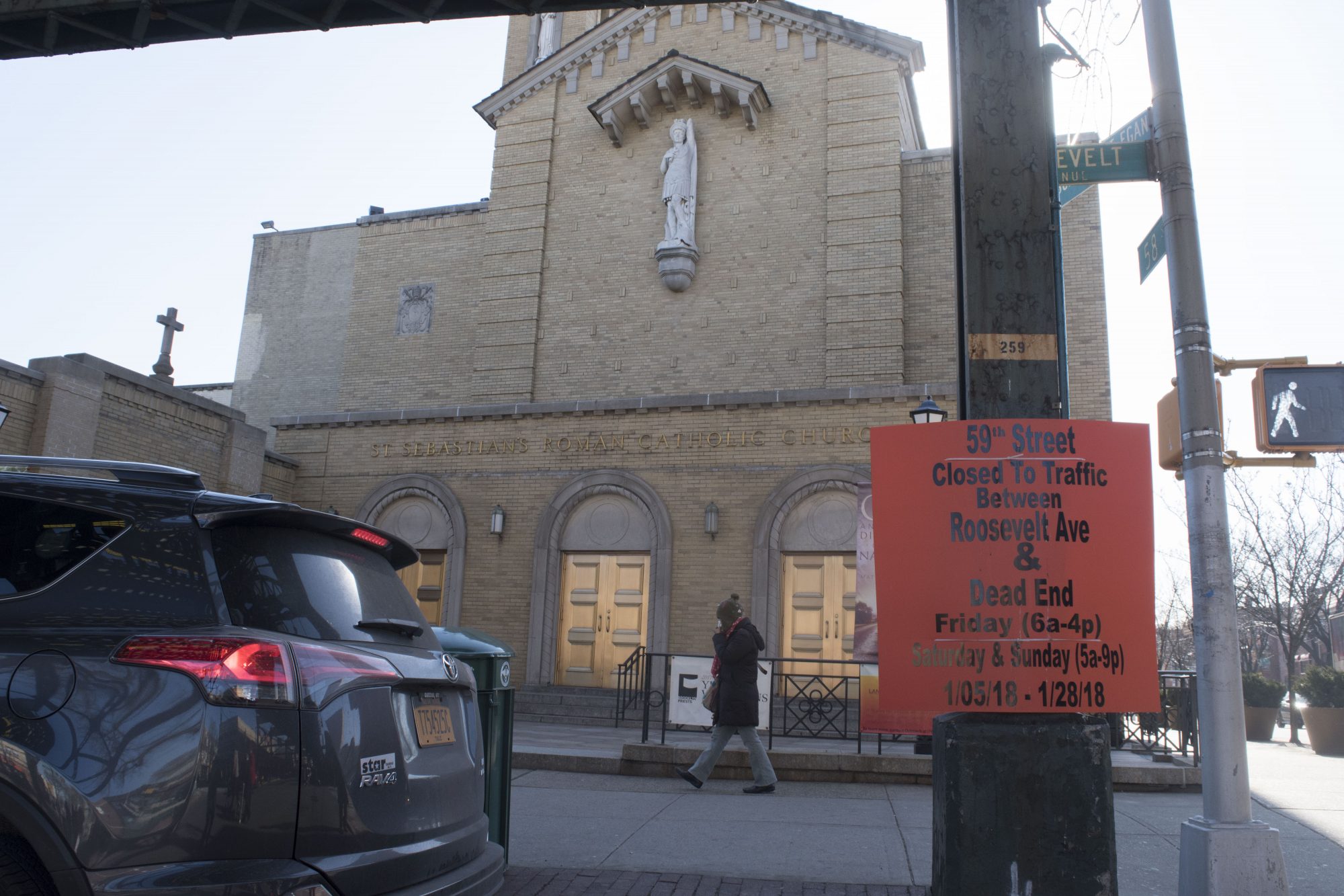 The recent track work has also affected St. Sebastian’s Church at the corner of 58th Street and Roosevelt Avenue, as its made traffic unbearable for parishioners.