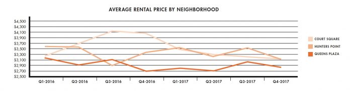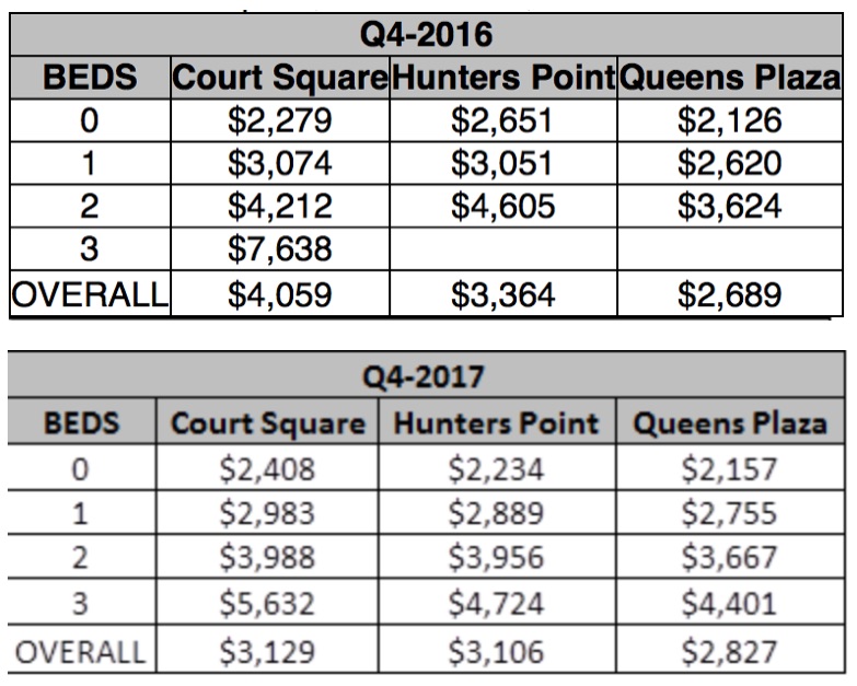 The report, released by Modern Spaces, revealed that the average rent paid across Long Island City fell 9 percent from 4Q2016 to 4Q2017.