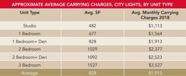 The average monthly carrying cost at Citylights for 2018 is $1,947, according to Smith, compared to $894 for a condo.