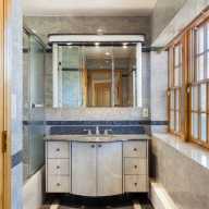 On the second floor, which you can access through the stairs or through the home’s personal elevator, you’ll find a master suite that boasts a gorgeous master bathroom, fireplace and a private patio. You’ll also find two bedrooms and two full bathrooms.
