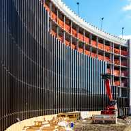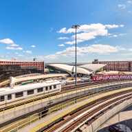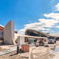 Since the project broke ground in December 2017, the second hotel tower has been fully topped out and a seven-layer, soundproofed glass façade is almost complete on the north tower. Once it is completed, the wall will make the TWA Hotel home to some of the quietest hotel rooms in the world.