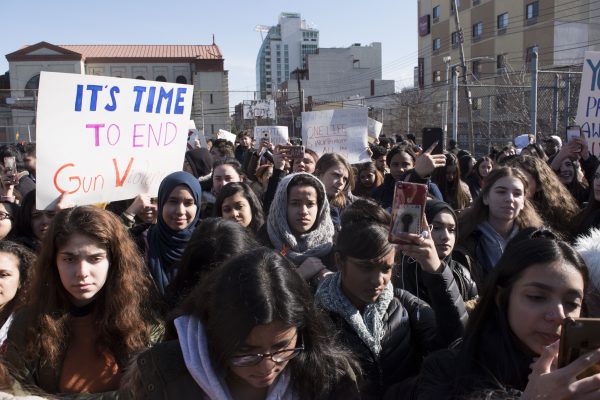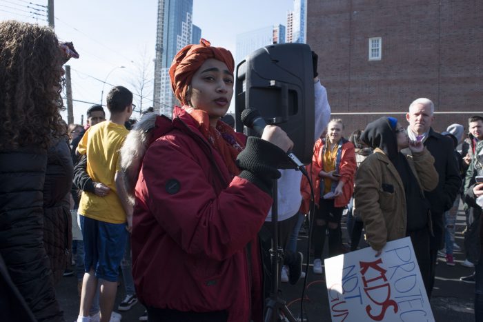 Students in Astoria and Long Island City joined a nationwide school walkout this morning to protest gun violence.