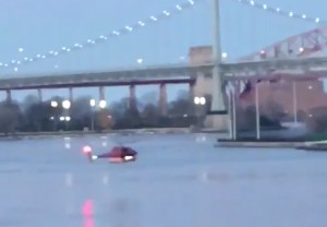 The red helicopter was taped by a bystander flying low over the river before crashing into the water.
