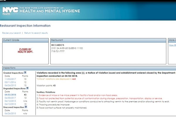 The 67-year-old banquet hall and caterer, located at 21-01 24th Ave., is known for hosting weddings, anniversary parties and other events. The space was closed after receiving 43 violation points in an inspection on April 3.