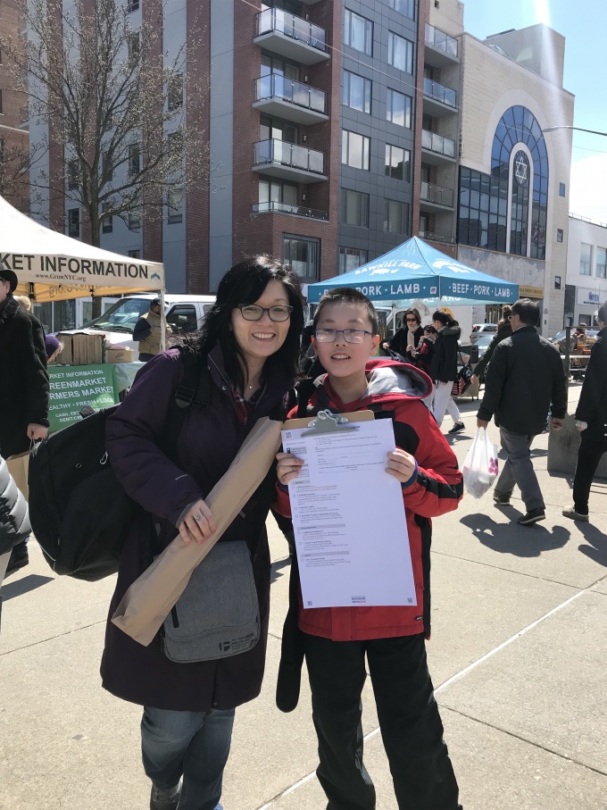 A mother and son voting together on the participatory budgeting ballot (Photo: Office of Karen Koslowitz)
