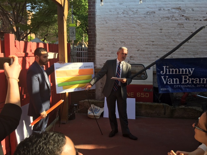 Councilmember Jimmy Van Bramer announced the results at Jack’s Fire House in Sunnyside Wednesday. Residents selected the winning projects when they voted between April 7 and 15 in a process called participatory budgeting.