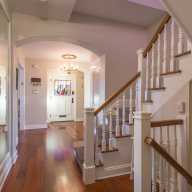 Other features of the first floor include a powder room and a sun room with a gas-stove fireplace.