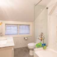 When you head up to the second floor, you’ll find the master suite that boasts an en-suite bathroom with an air bath, a fully-automated toilet, and separate glass-enclosed shower, and a spacious walk-in closet. The second floor is completed with a second bedroom with a private bathroom, an office and a large linen closet.