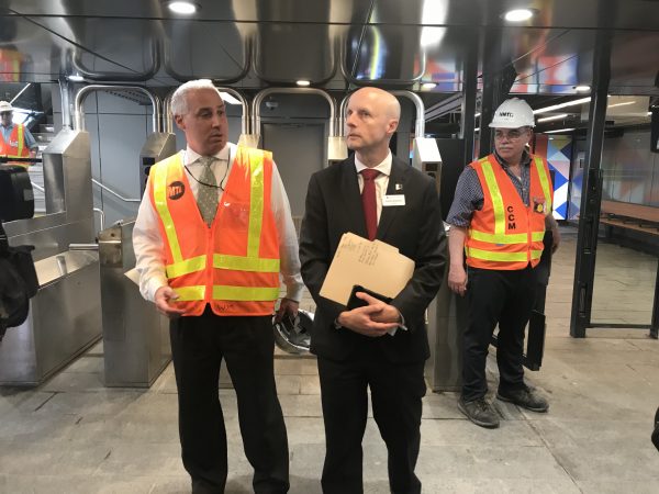 NYC Transit President Andy Byford toured the 30th Avenue station on Friday morning along with a group of contractors and journalists. Byford pointed out a number of changes and upgrades at the station, including new bolts throughout the platform.