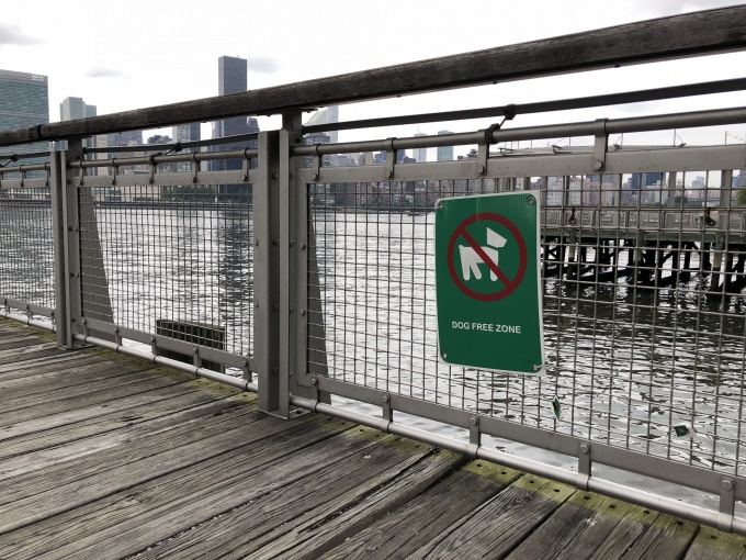 Gantry Plaza State Park just north of Pier 1, where a posted sign says dogs are not permitted. (Photo: Nathaly Pesantez)