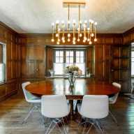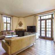 As you walk into the home, the first thing you’ll notice is the wide pegged oak floors, which flow throughout the entire first floor. When you explore the first floor, you’ll find a custom kitchen, a sunken living room with a fireplace and a dining room that’s decked out in finely crafted wood features.