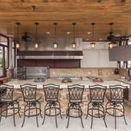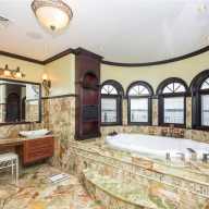 The biggest draw on the first floor is the entertainment level, which is complete with a bar and a lounge area. However, you’ll want to take the party outside to the backyard, where you’ll find an in-ground pool, a huge patio area, a full stone cooking area, docks and a gazebo.
