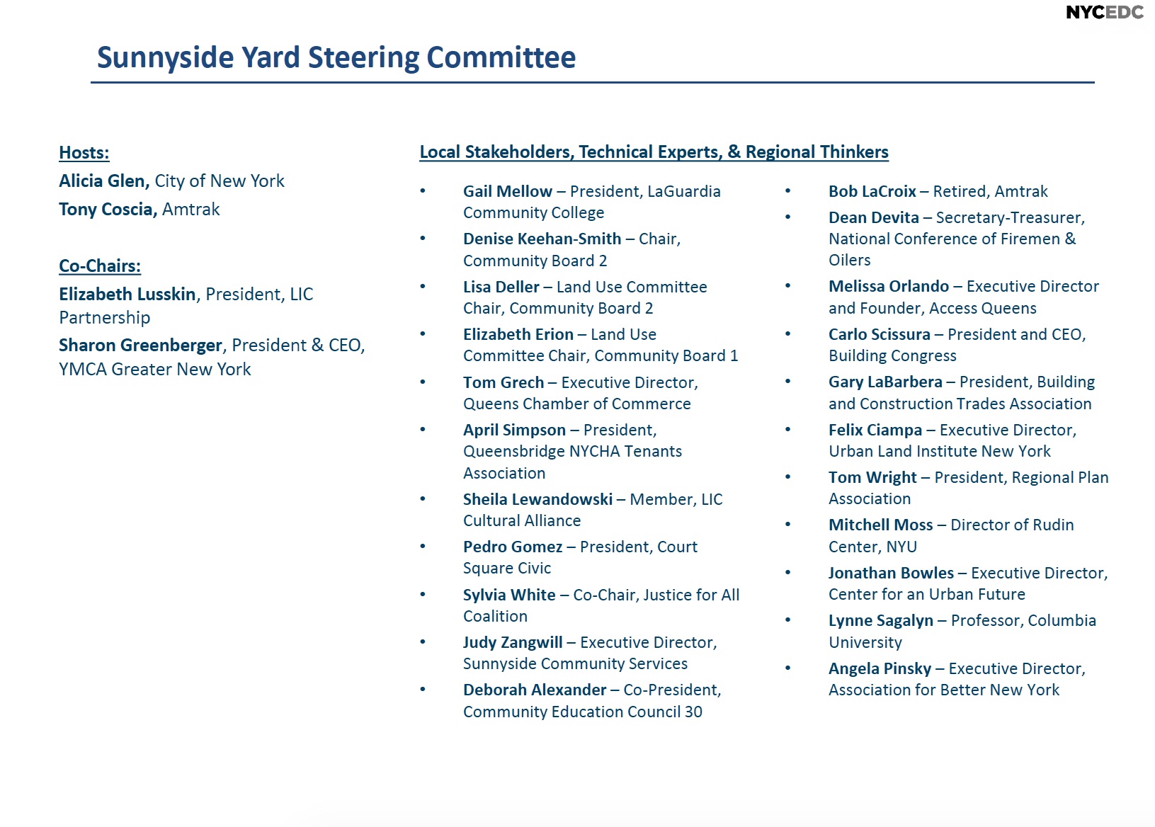 “We are confident that the Steering Committee will help create an inclusive plan that could deliver on good jobs, affordable housing, open space and improved public transit in Western Queens,” said Cali Williams, Director of Sunnyside Yard, in a statement. “This is just the start of a conversation and we look forward to engaging New Yorkers in envisioning this unique site.”