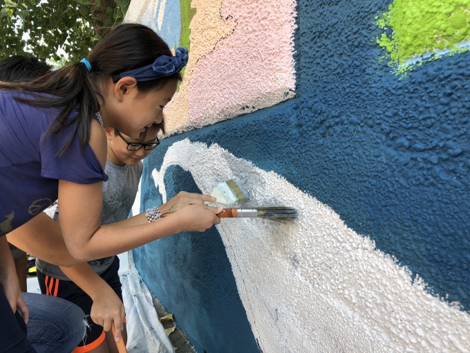 The concrete wall has since been primed and prepped in preparation for the artwork to be painted on beginning today, with children mainly working on the piece for three days out of the week and participants in the Summer Youth Employment Program filling in on other days.