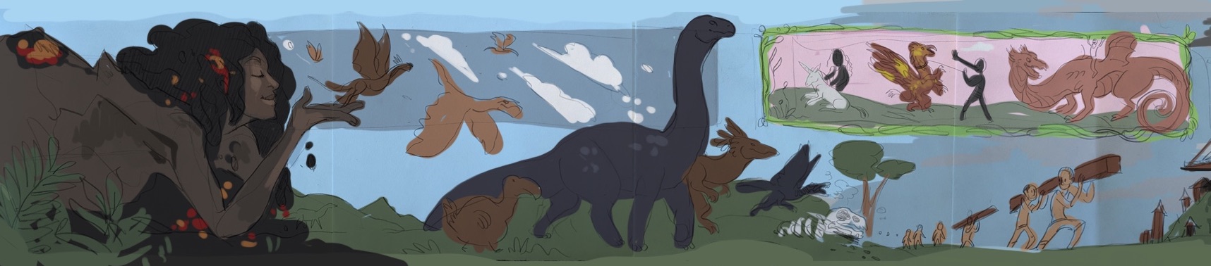 Designs soon to come to life on the wall include images of nature and of a past Long Island City, wrapping up to convey a sense of where the world and neighborhood have been and where both are headed.